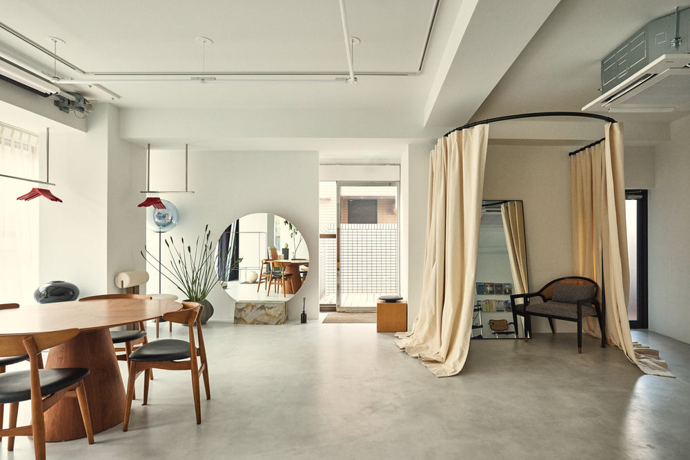 「COVERS STUDIO」は、原宿・明治神宮前・表参道から徒歩すぐの好立地に位置する、白を基調とした明るいモルタルフロアの自然光スタジオです。南向きに大きく設けられた全面窓からは一日を通してやわらかな陽光が降り注ぎ、塗装仕上げの白壁とウッドの曲線デザインウォールがシンプルながら印象的な背景を演出します。