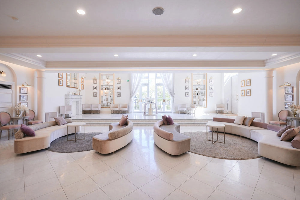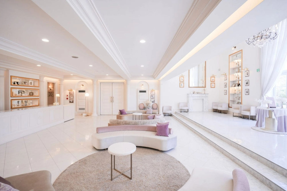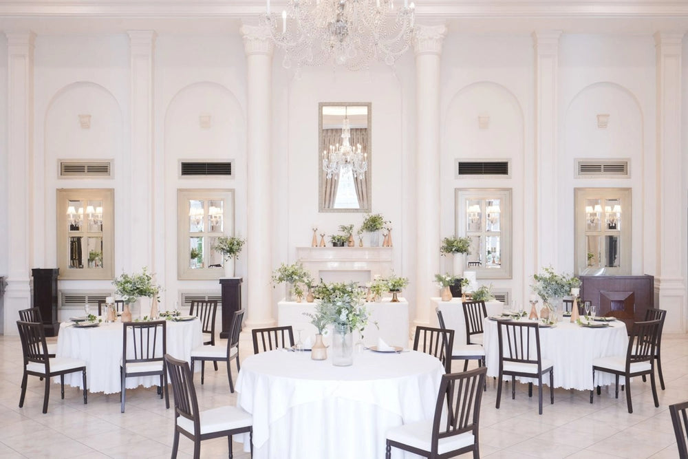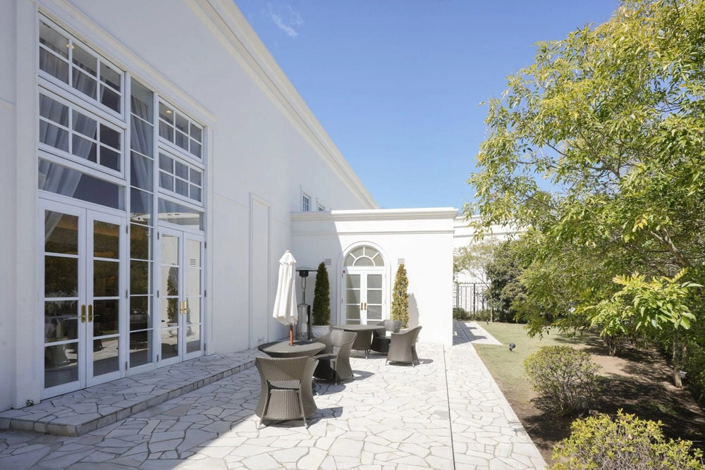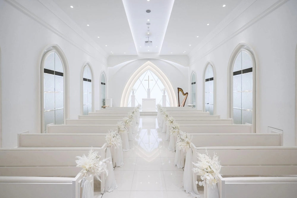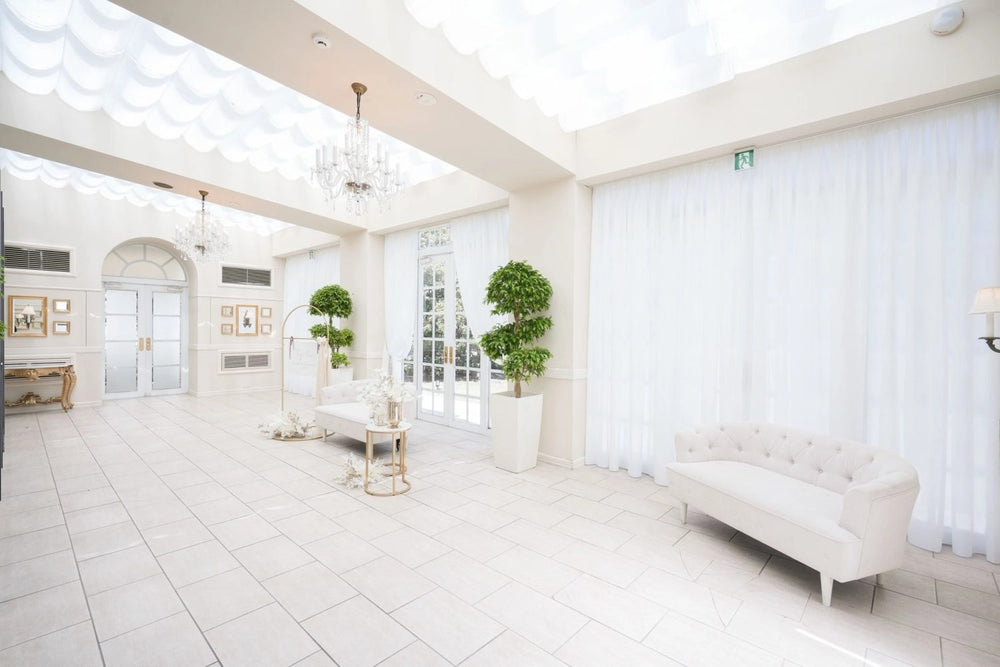 ホワイトハウスは、チャペル・ロビー・バンケットすべてが白で統一され、上質でラグジュアリーな空間。特にチャペルへ続く大階段や、天井高5.9mのバンケットは、パーティーシーンやファッション撮影に最適です。隣接エリアは全面ガラス天井で、自然光がたっぷり入り明るい撮影が可能です。