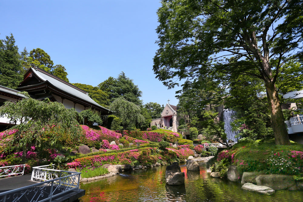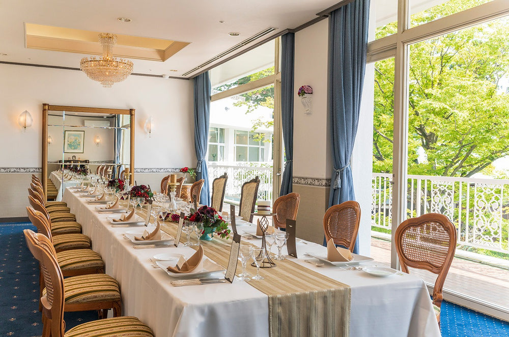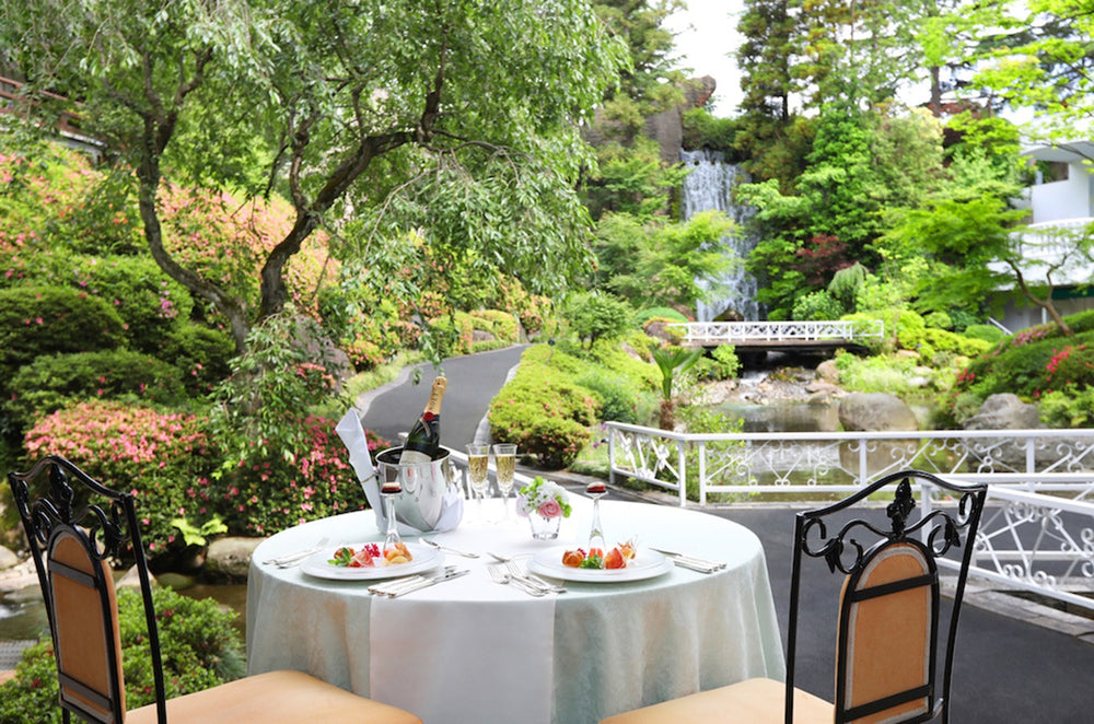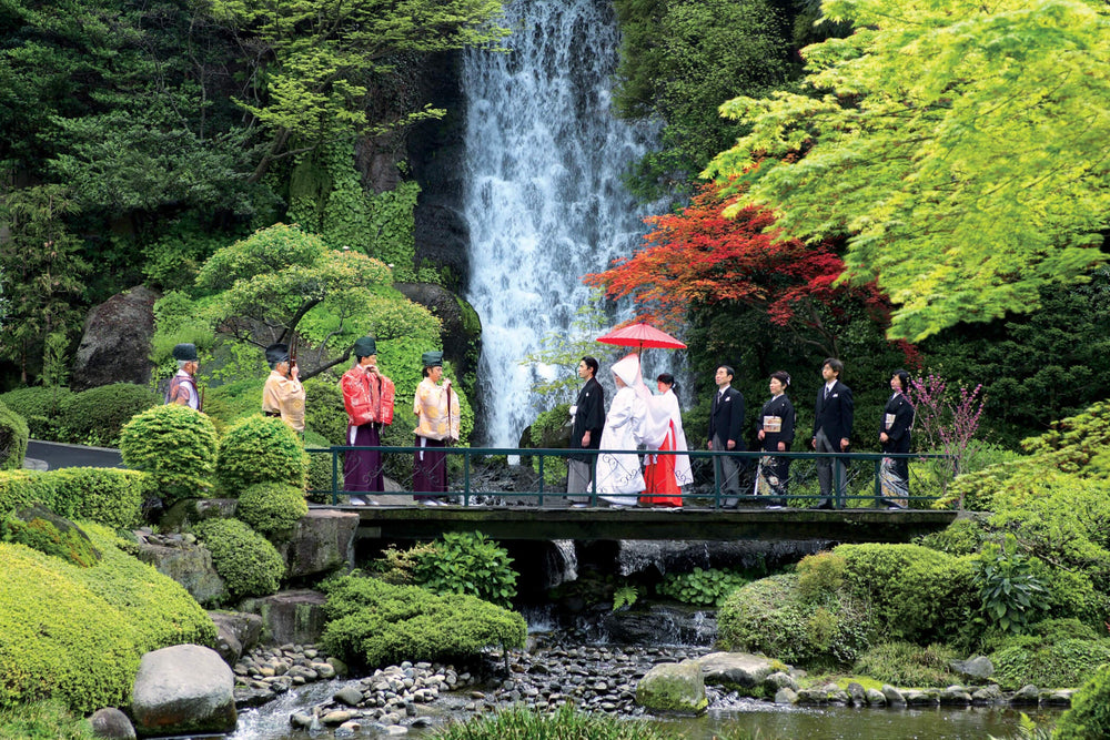 自然豊かな1500坪の日本庭園をはじめ、ロココ調のメインロビー・個性あふれるサイズ別のバンケットの数々・吹き抜けの螺旋階段&シャンデリアなど、