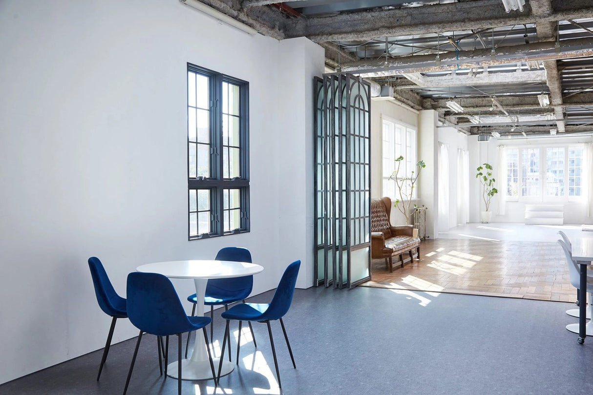 コンクリート調、ヘリンボーン、明るいグレー床と、白壁、ピンク壁、ウッド壁など床や壁の種類に富み、可動式の壁も複数◎