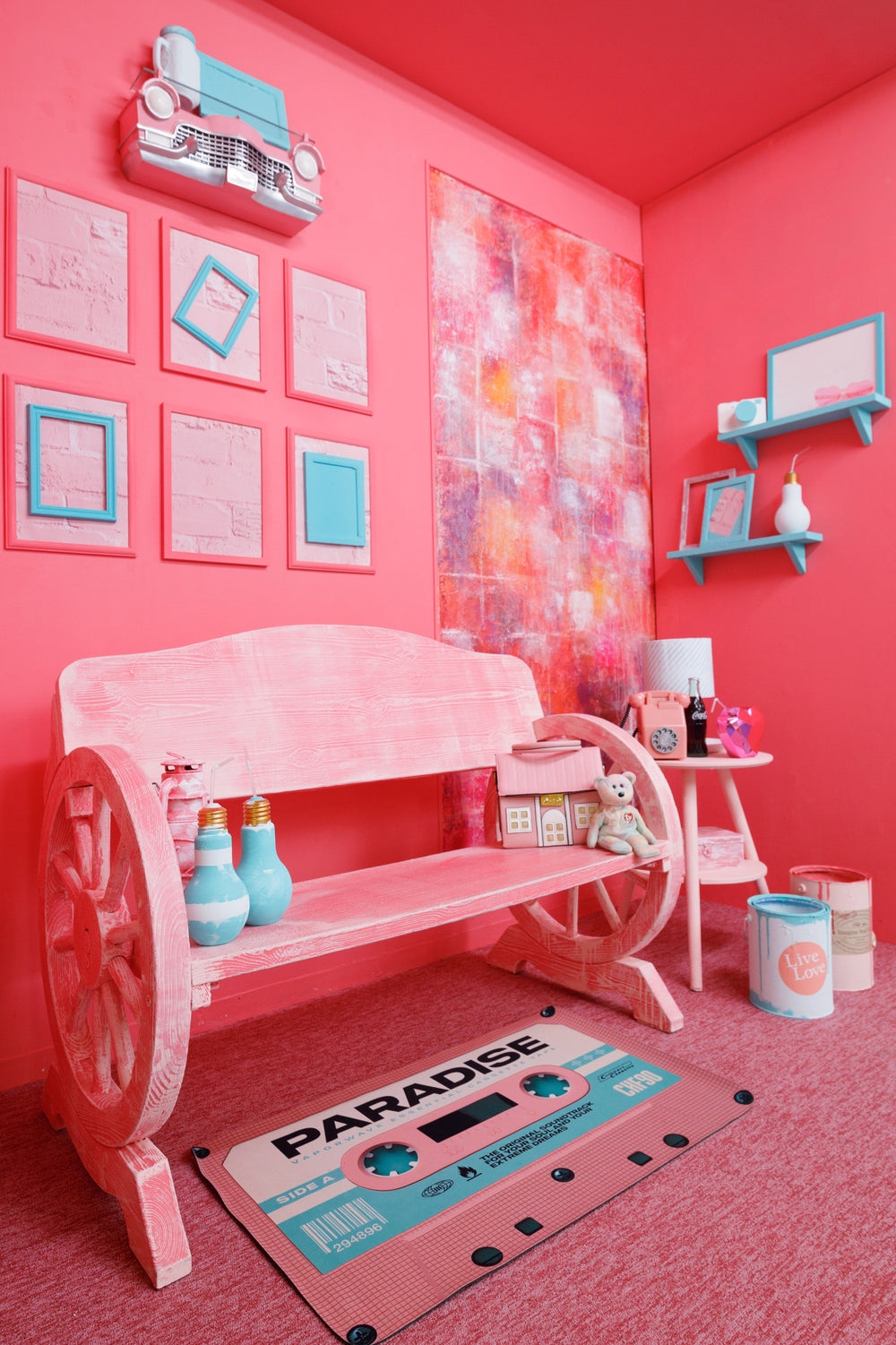 一風変わったインテリアも魅力の一つで、「大きな時計」や「壊れた椅子」を取り入れた独特の家具や什器を備えており、これらは受注販売も行っています。個性的な撮影シーンを演出できるだけでなく、物販としての魅力も備えています。
