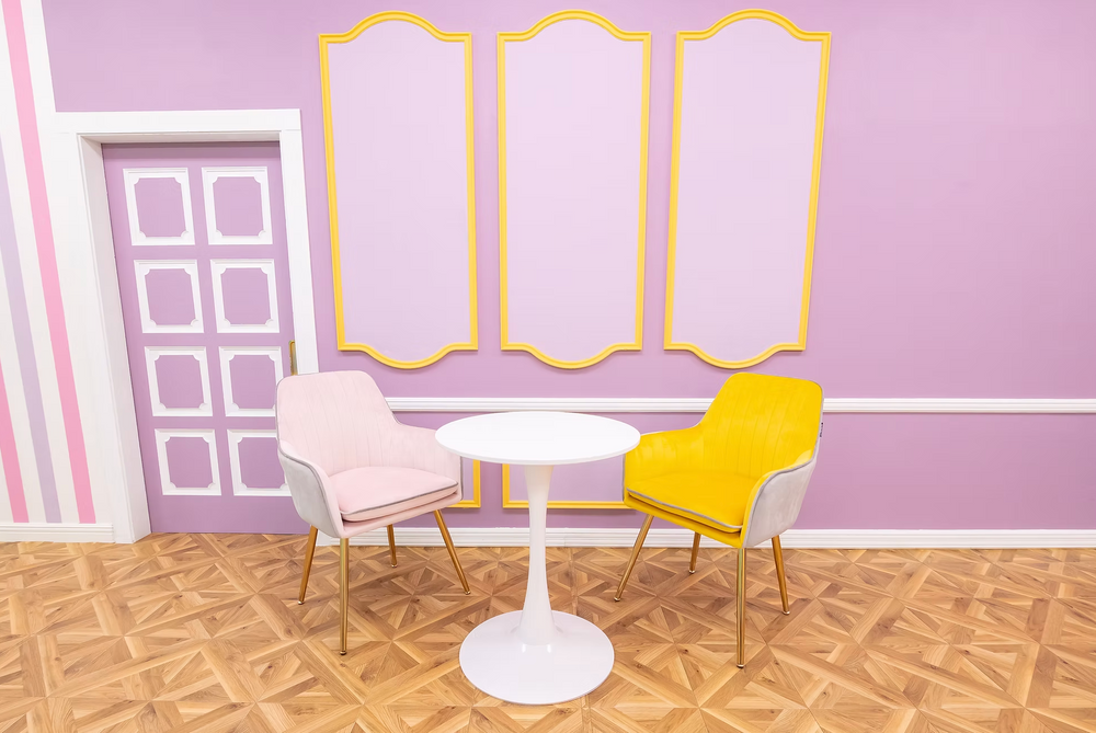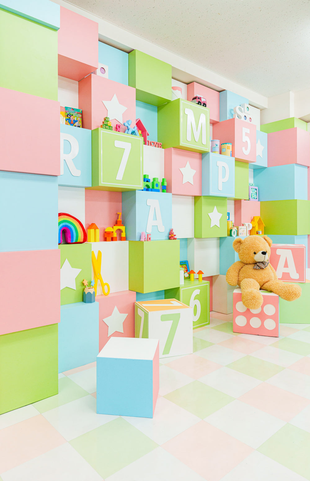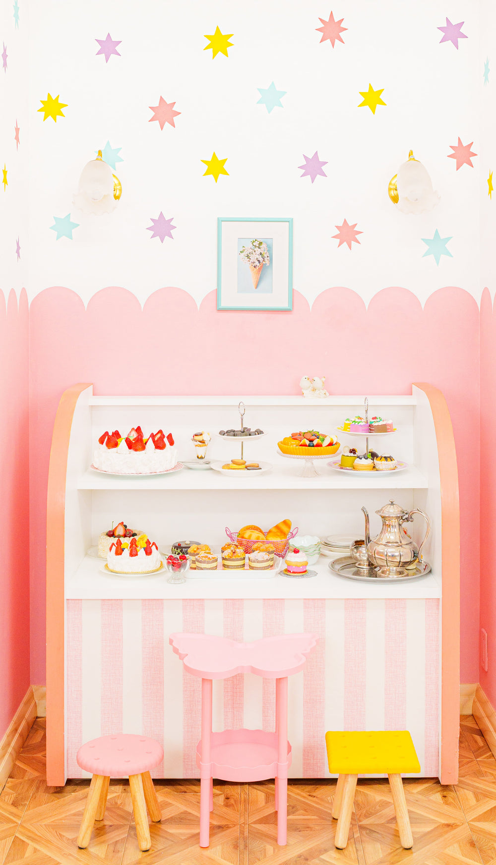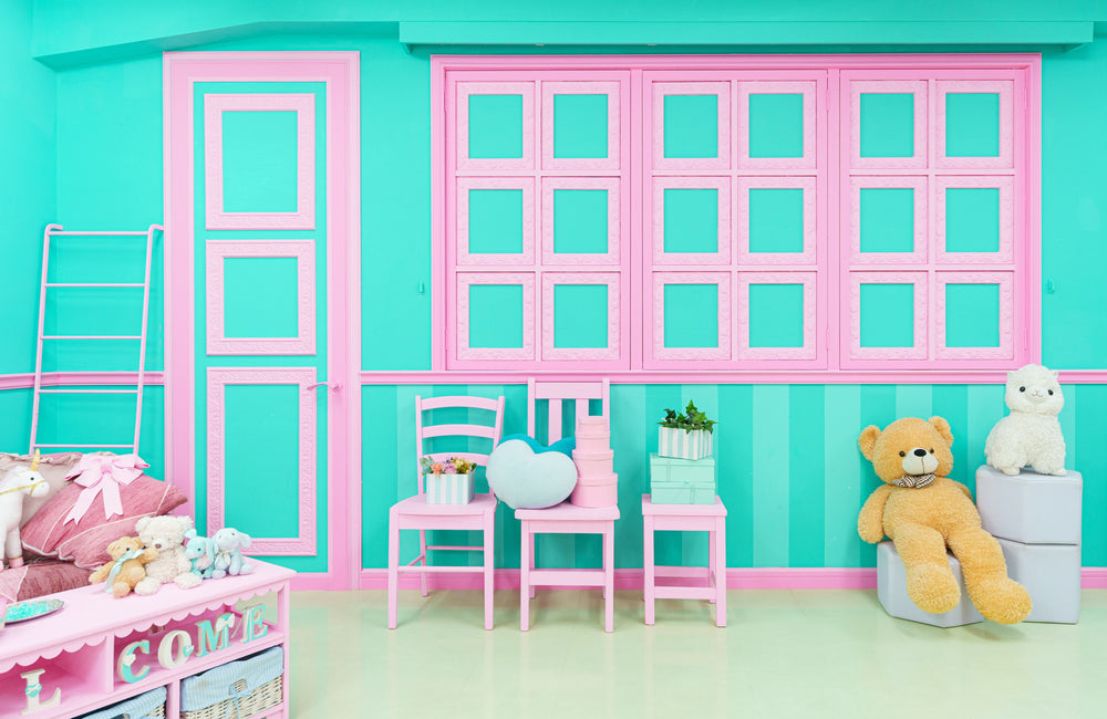 スタジオ内には壁ごとに異なるパステルカラーが施された4つの個性的なブースがあり、コスプレ撮影やポートレート、メルヘンやロリータ系のスタイリッシュな写真撮影にぴったりです。キッチン設備も備わっていますが、実際の使用はできないダミー仕様となっています。