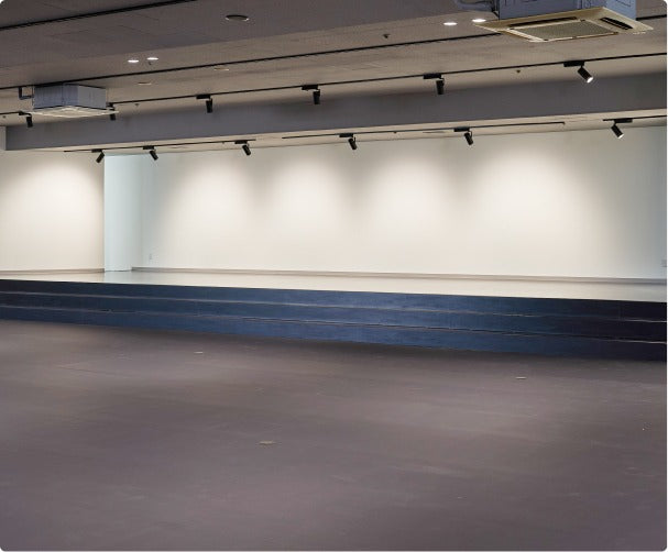 IKUSA ARENA は、東京都練馬区にある大型イベントスペースで、約1,000㎡の広大な屋内空間を誇ります。床は安全性に配慮したゴムマット仕様のメインフロア(約700㎡)をはじめ、横14.6m×縦4.2m の大型ステージ、吊り下げ式130インチスクリーン、全色調光対応の照明、プロ仕様の音響設備など、イベント・撮影・総会・パーティーなど多彩な用途を想定した設備が完備されています。
